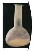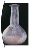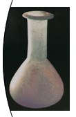 Açık mavi-yeşil, geçirgen cam hamurlu, serbest üfleme tekniğiyle yapılmış, ağız dışa ve içe katlanmış, eğimli olarak yapılmış, uzun dik silindirik boynun alt kısmı aletle biçimlendirilmiştir. Uzun oval gövdeli ve yuvarlatılmış düz diplidir. Yüzeyde bozulma vardır, yer yer yapışık toprak kalıntıları görülmektedir.