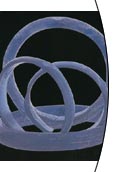 Koyu mavi renkli, halkla biçimli, içi düz dışı bombeli, kesik dairesel kesitli,